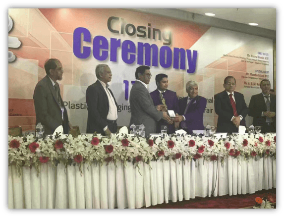 2017 Osallistumme 12. DHAKA INTERNATIONAL PLASTC PACKING & PRINTING INDUSTRIAL FAIR -messuille, voitimme BPGMEA:n myöntämän "hyvän laadun ja palvelun" 1. palkinnon.